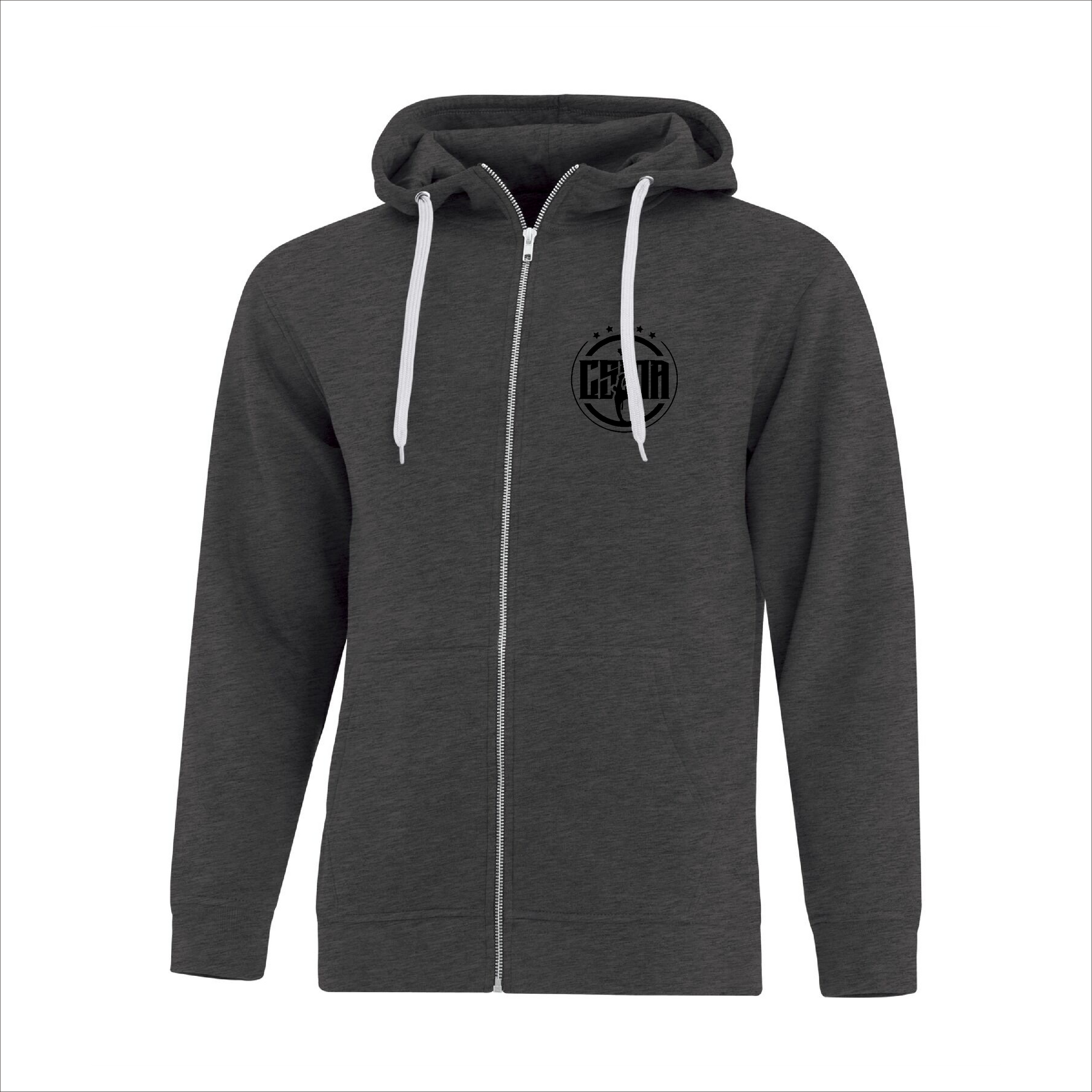 Comes with the CSMA logo printed on the front left chest and full size on the back of the hoodie.