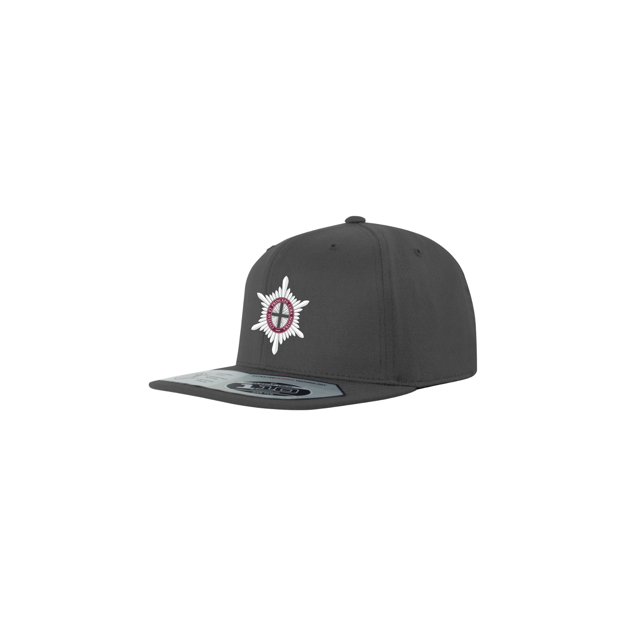 Black 6 baseball hat. 83/15/2 acrylic/wool/spandex blend. Adjustable snapback closure.