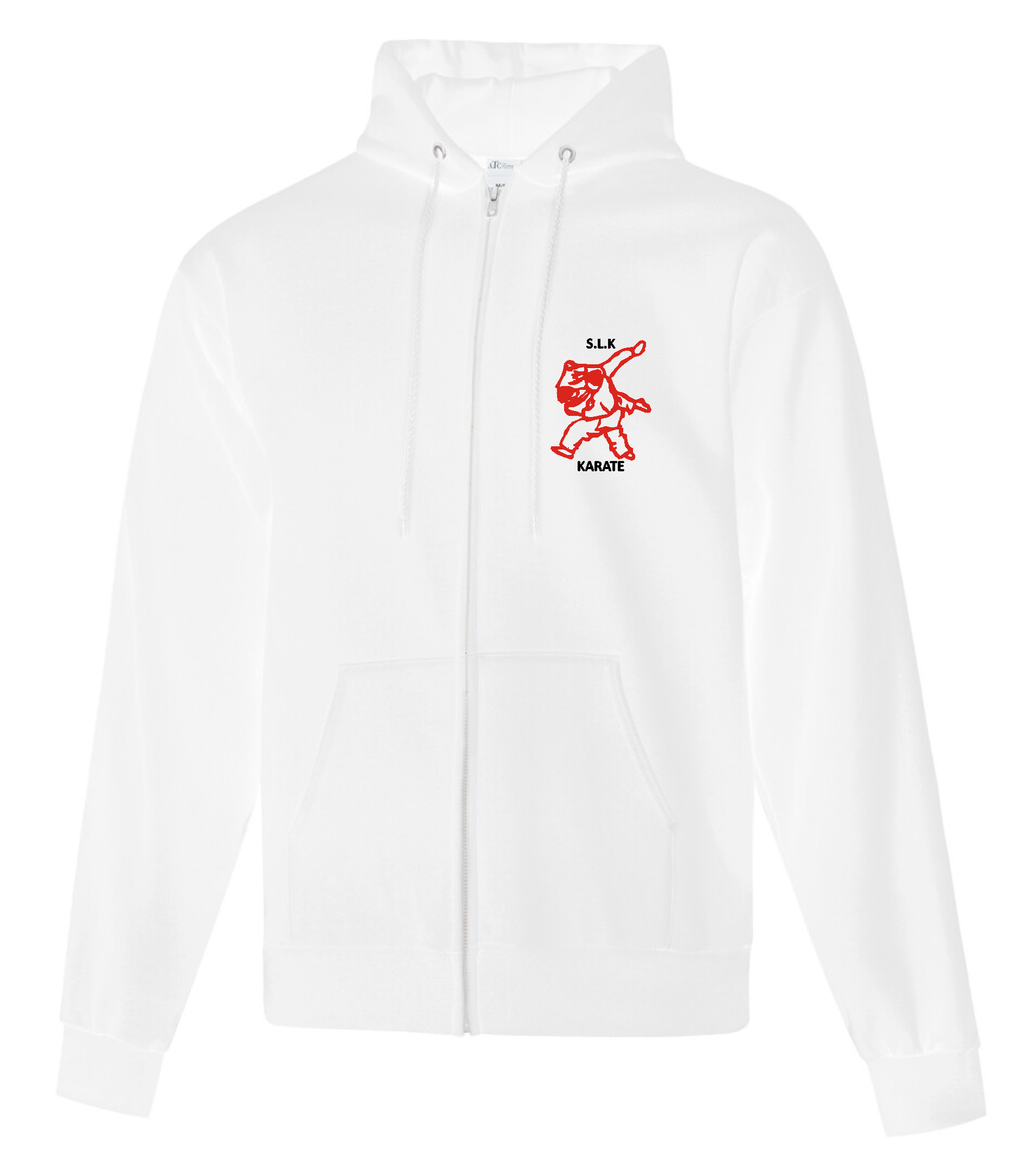 Comes with the Sharbot Lake Karate logo embroidered on the front left chest of the hoodie.